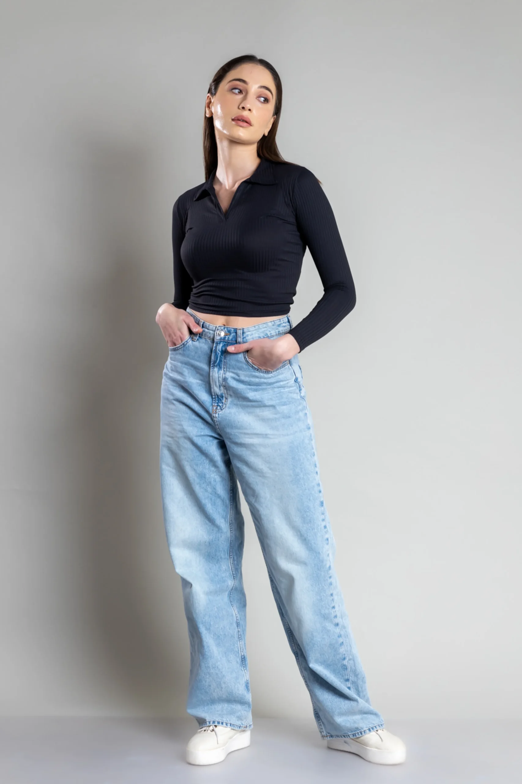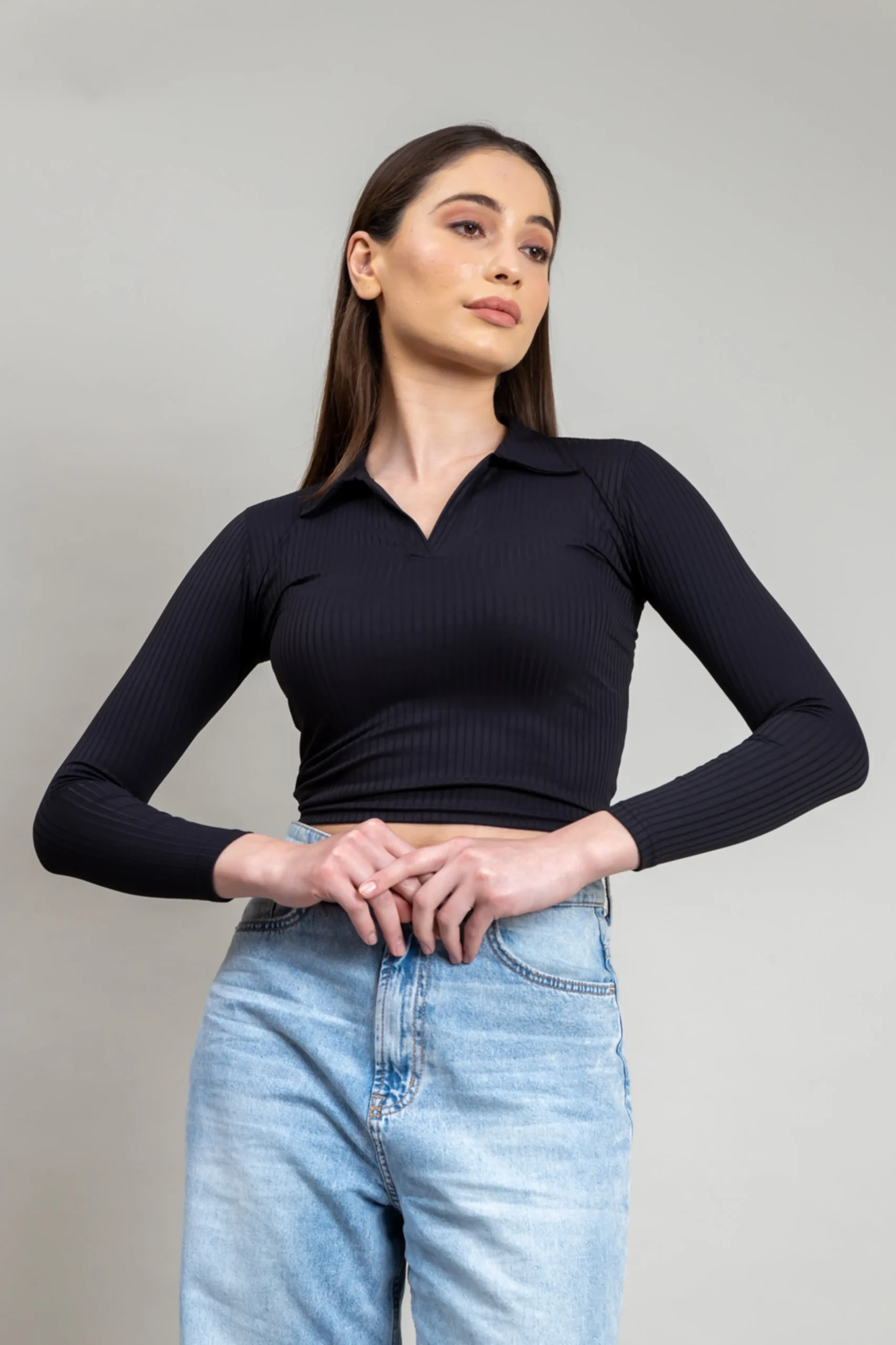 Women Polo Full Sleeve Crop Top